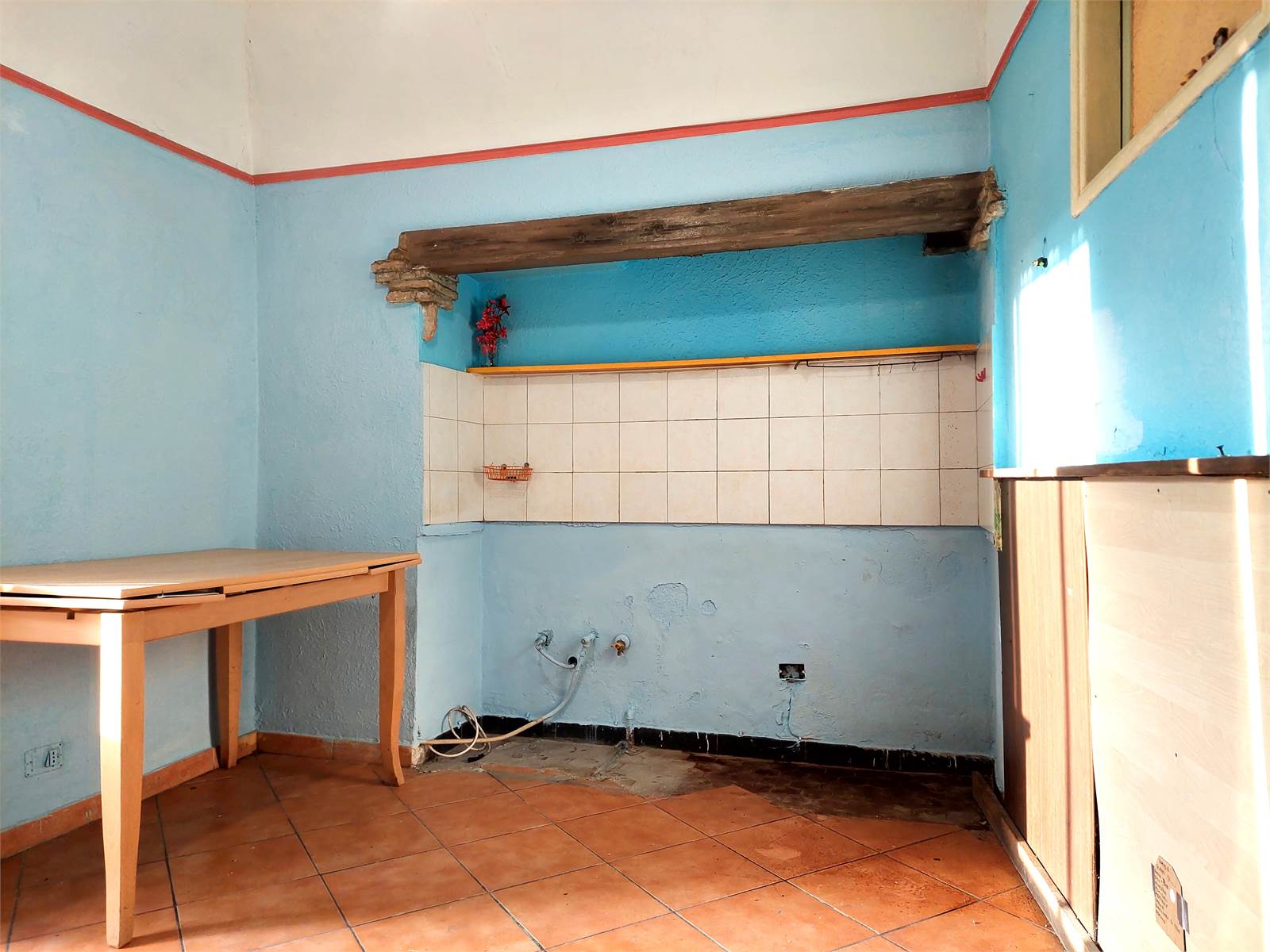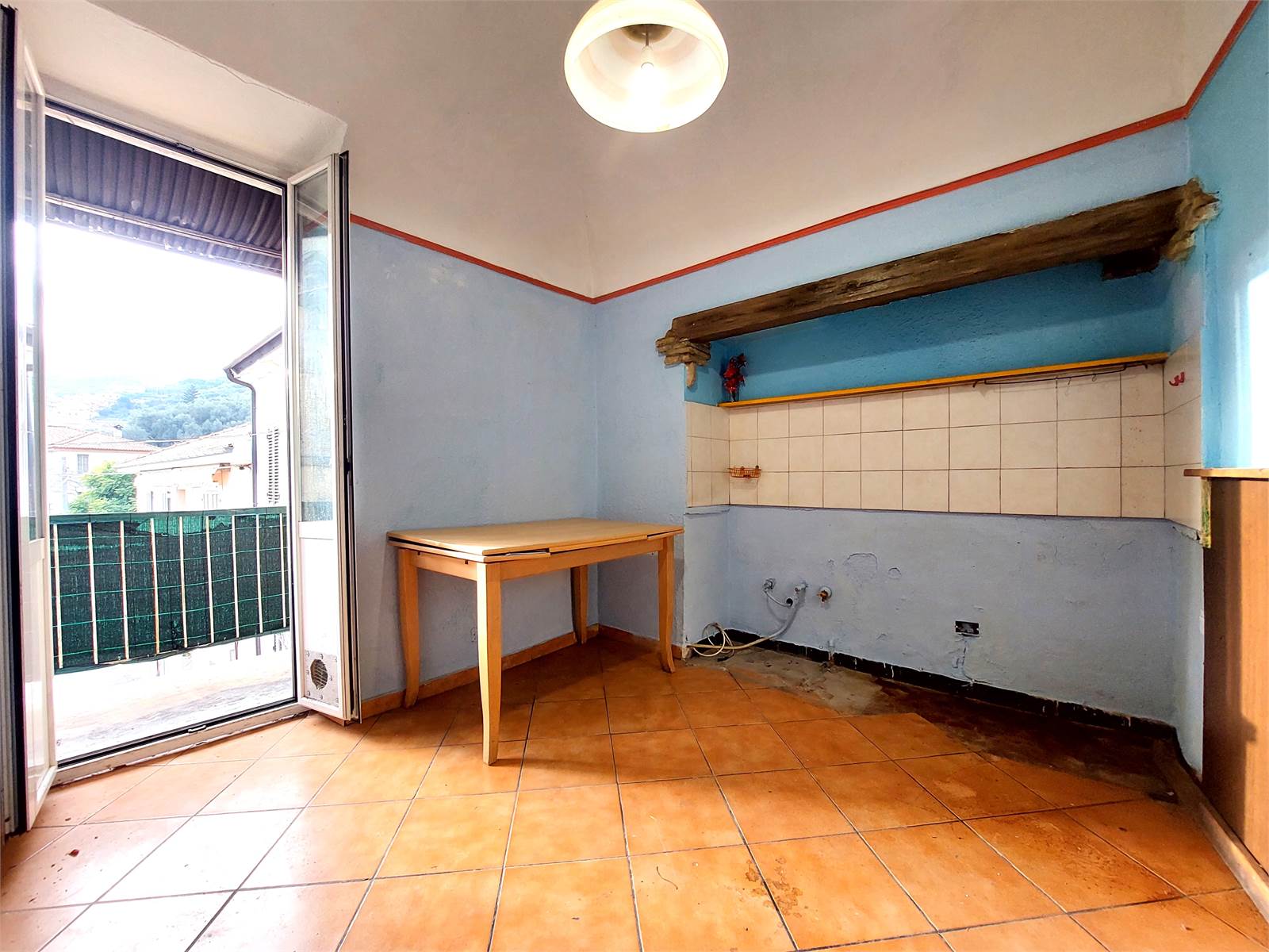 La cucina è abitabile ed è dotata di un balcone dal quale si ha vista panoramica sulla piazza e sulle colline circostanti.
