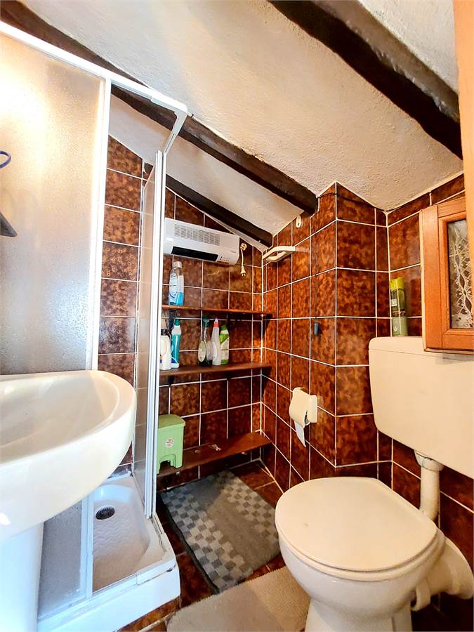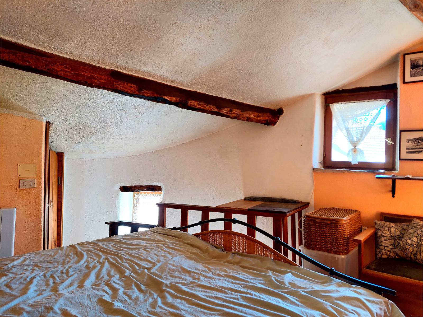 Una scala interna in muratura con pedate in cotto conduce al primo ed ultimo piano della casa dove ci sono una camera mansardata con letto matrimoniale ed armadio ed un piccolo bagno dotato di finestra e doccia.