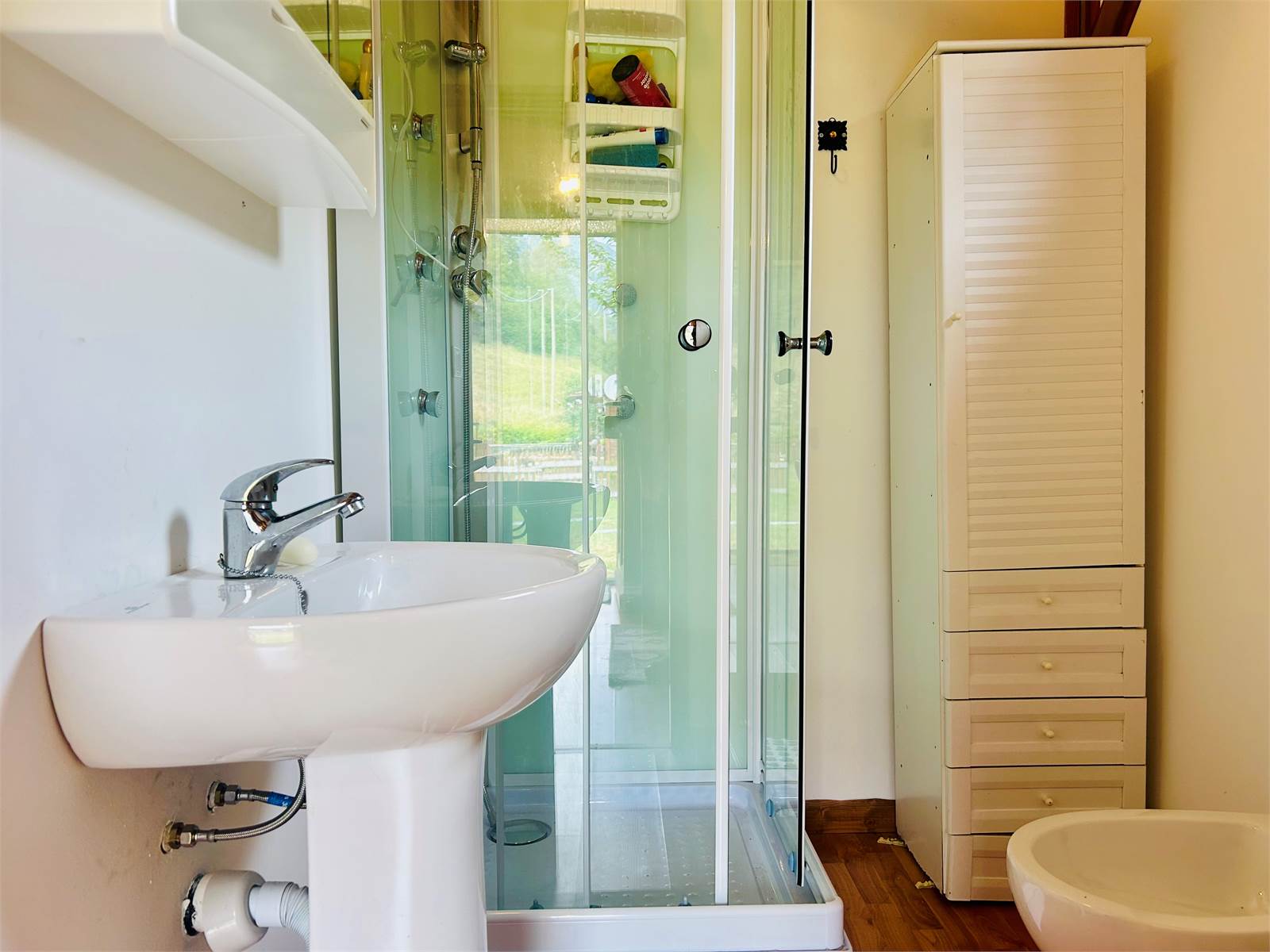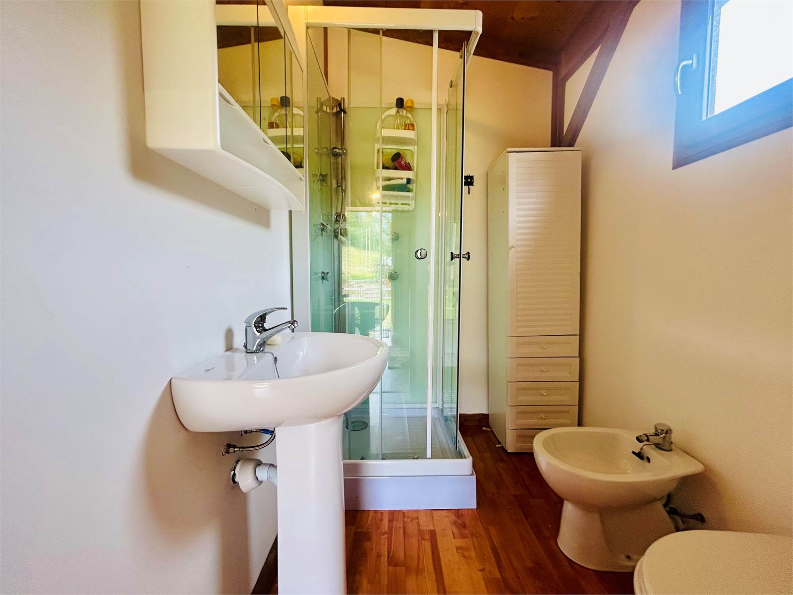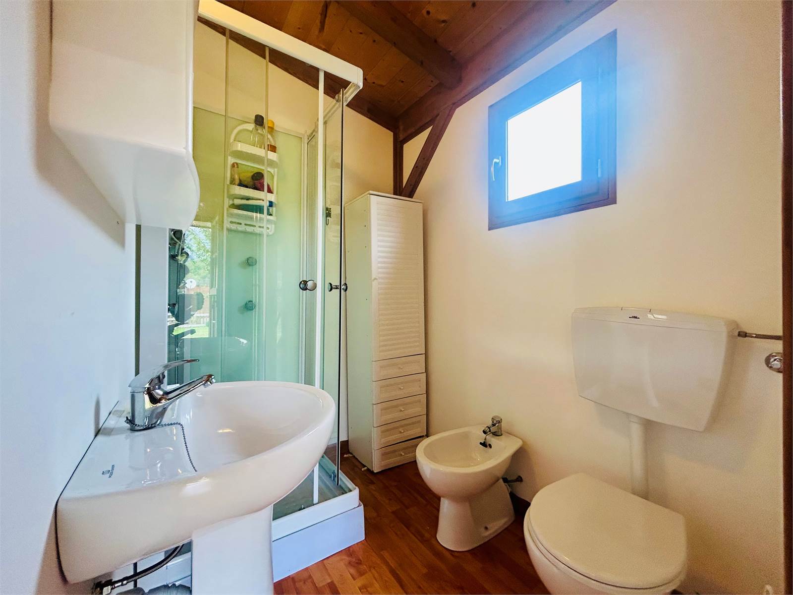 Il bagno comodamente accessibile è dotato di doccia e finestra.