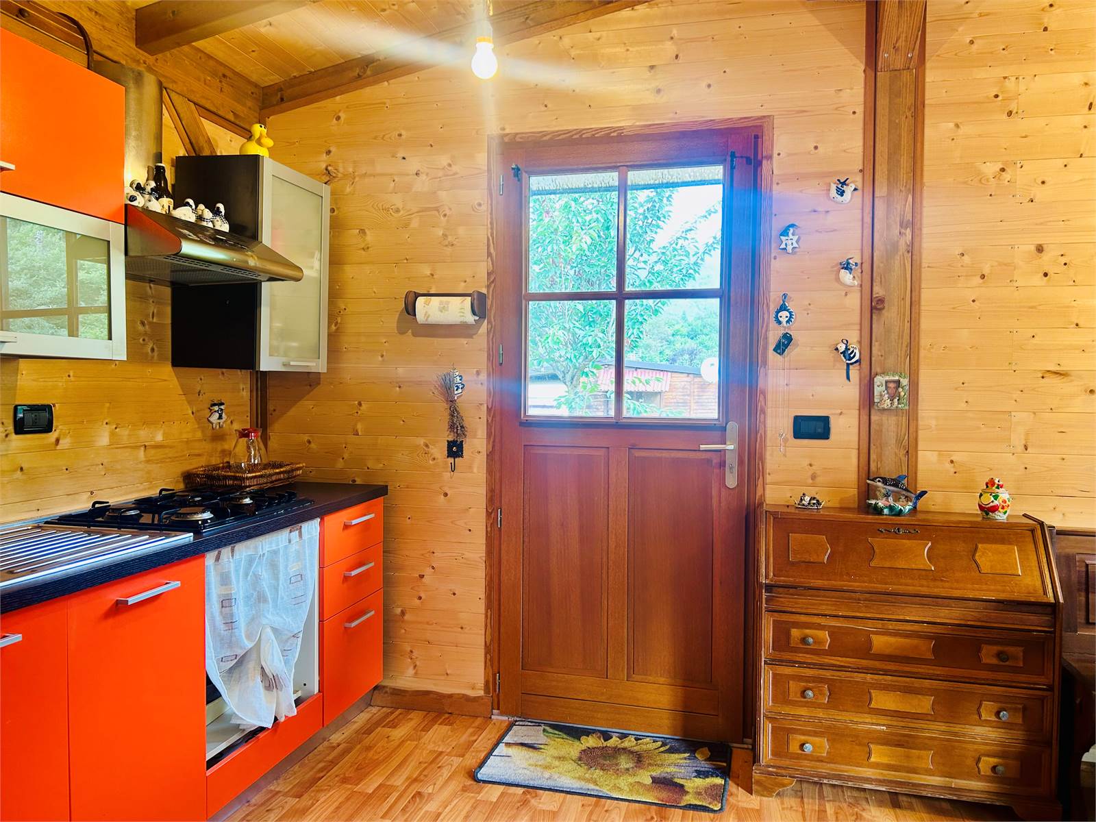 L'angolo cottura è alimentato a gas Gpl con bombola esterna.