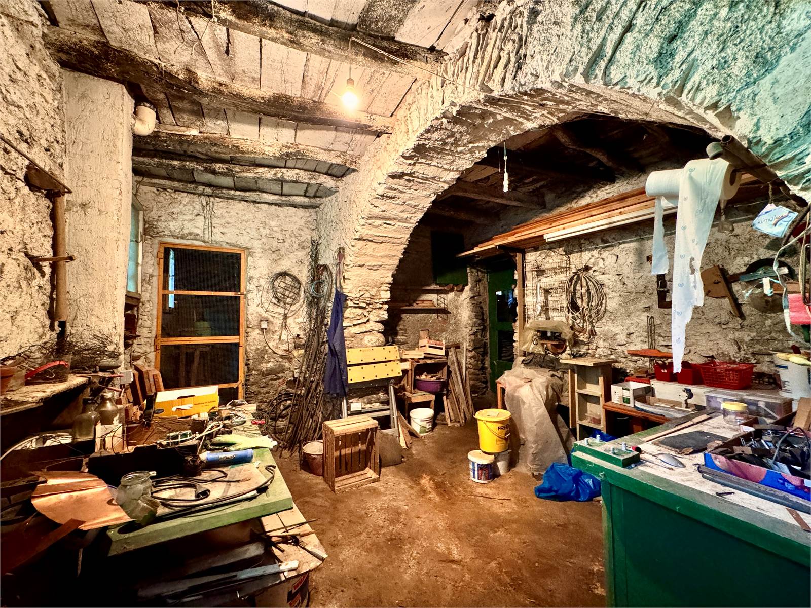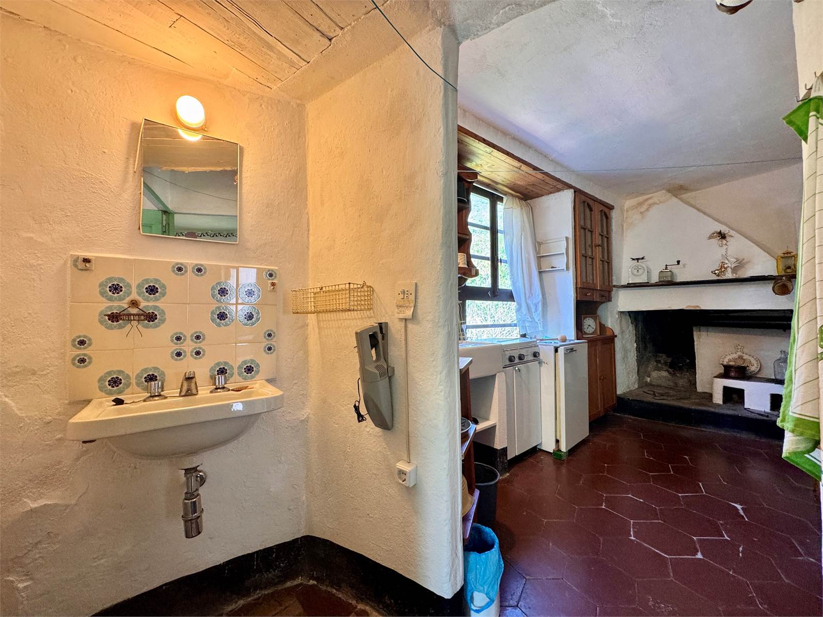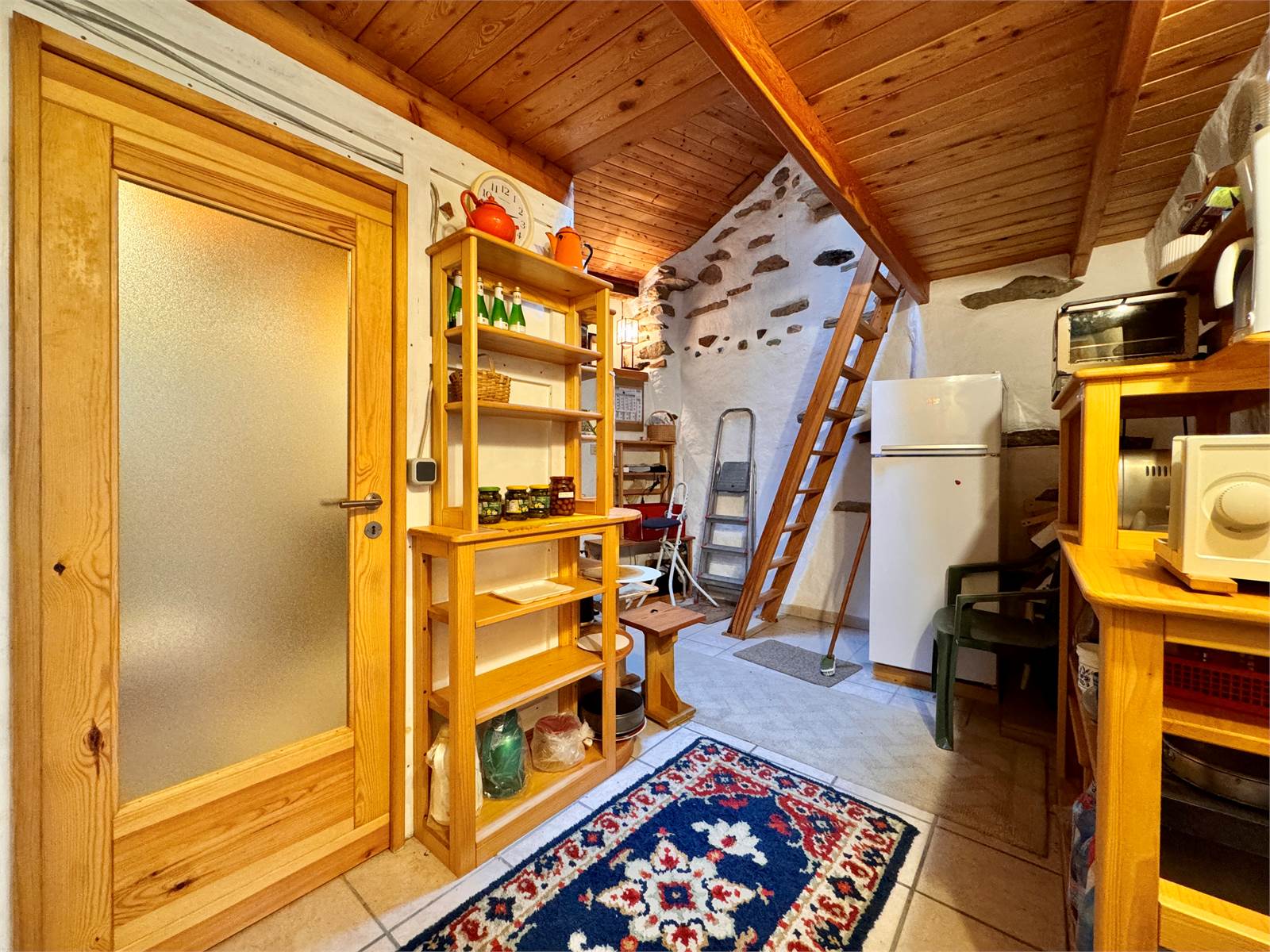 Si accede all’abitazione dal vicolo comunale, entrando direttamente nell'atrio. Il piano terra è composto da un ampio atrio d’ingresso di circa 18 metri quadri con accesso alle cantine e alla legnaia. Tramite scala interna si accede al primo piano, che ospita un disimpegno, una camera da letto singola, un'ampia camera matrimoniale con balcone e una terrazza vivibile di circa 15 metri quadri. Sempre al primo piano si trovano un corridoio che conduce a una cucina abitabile (anch’essa con balcone), il bagno padronale di circa 15 metri quadri, un’ulteriore camera singola, un secondo bagno con box doccia e un vano ripostiglio soppalcato.