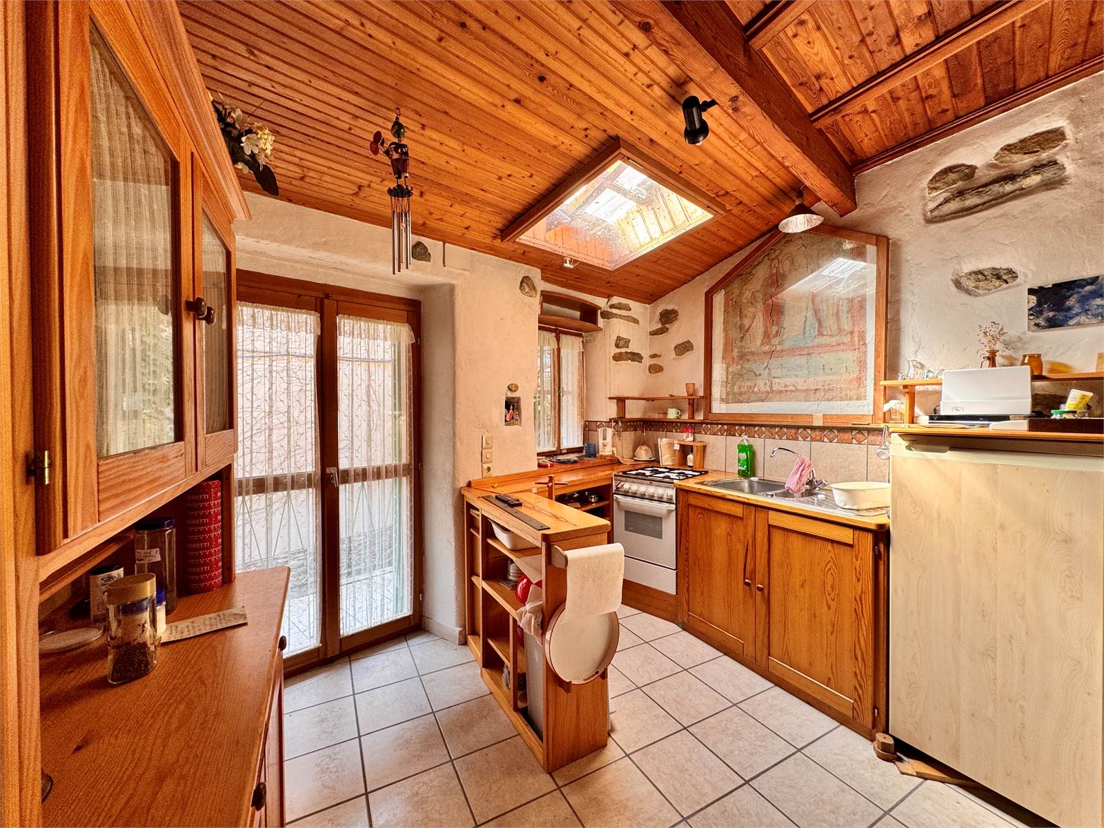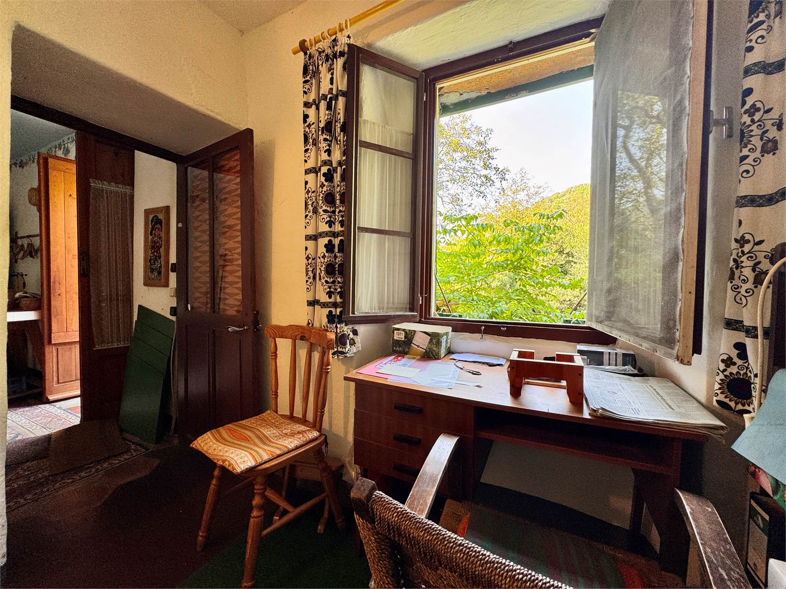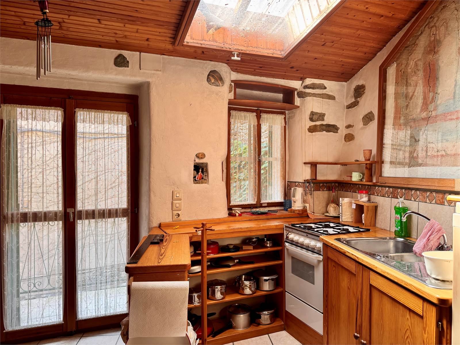 La proprietà è un'antica casa in pietra, ristrutturata negli anni '90 e mantenuta con un carattere rustico. Si tratta di un casale di circa 300 metri quadri, libero su tre lati e disposto su tre livelli interni, con giardino di proprietà, balconi, terrazze e cantine.