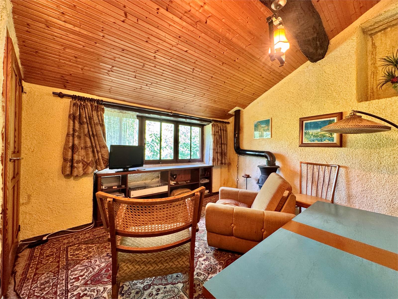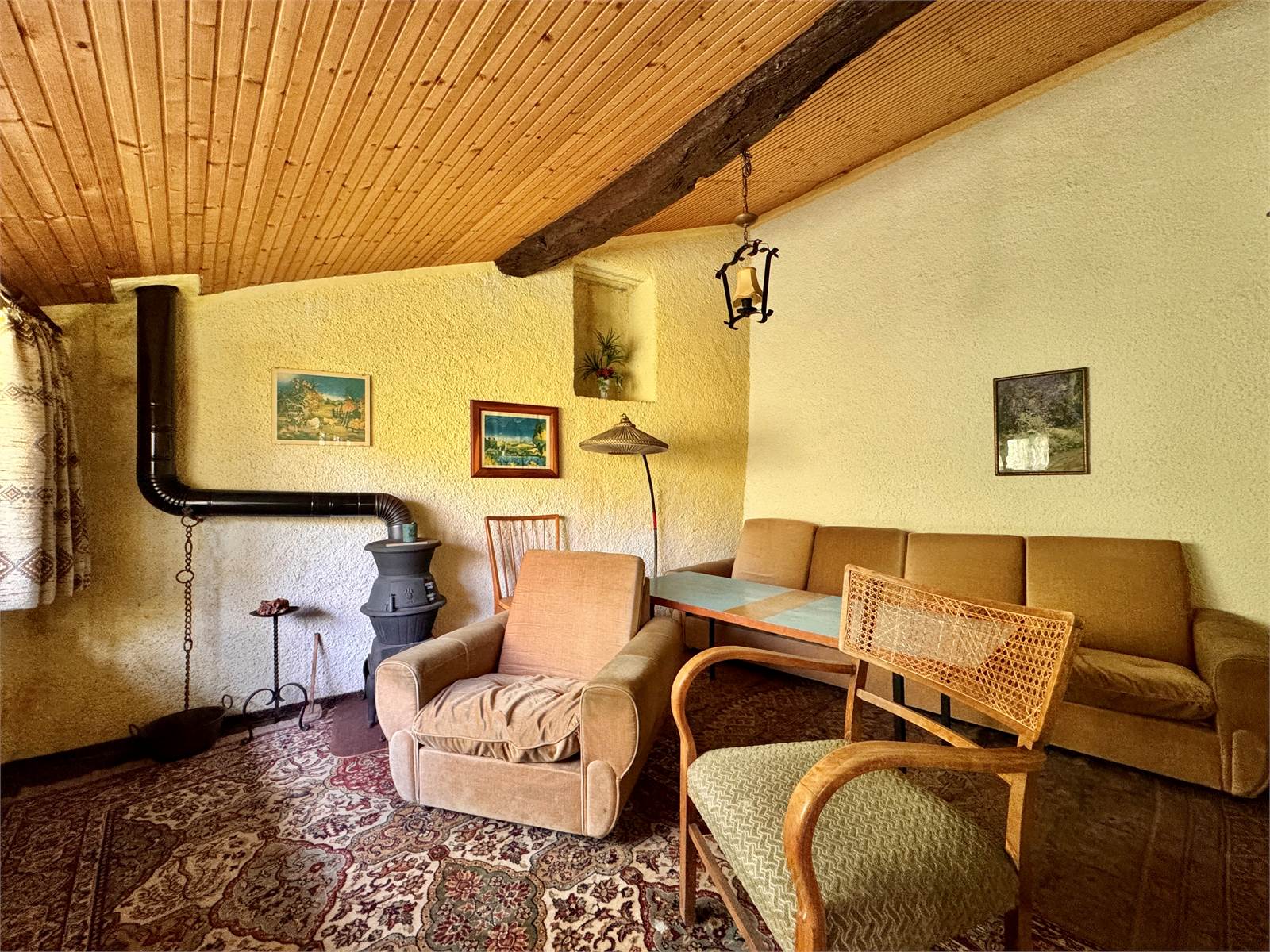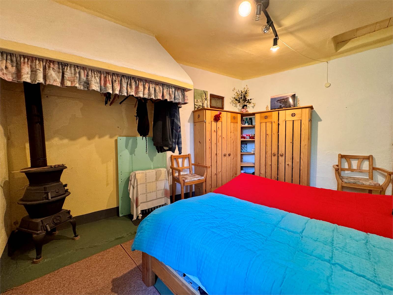 Attualmente la casa non dispone di un sistema di riscaldamento centralizzato, ma è riscaldata tramite alcune stufe a legna presenti nei vari ambienti. L’acqua calda è prodotta da boiler elettrici e gli infissi hanno vetri singoli.