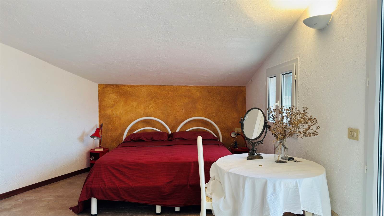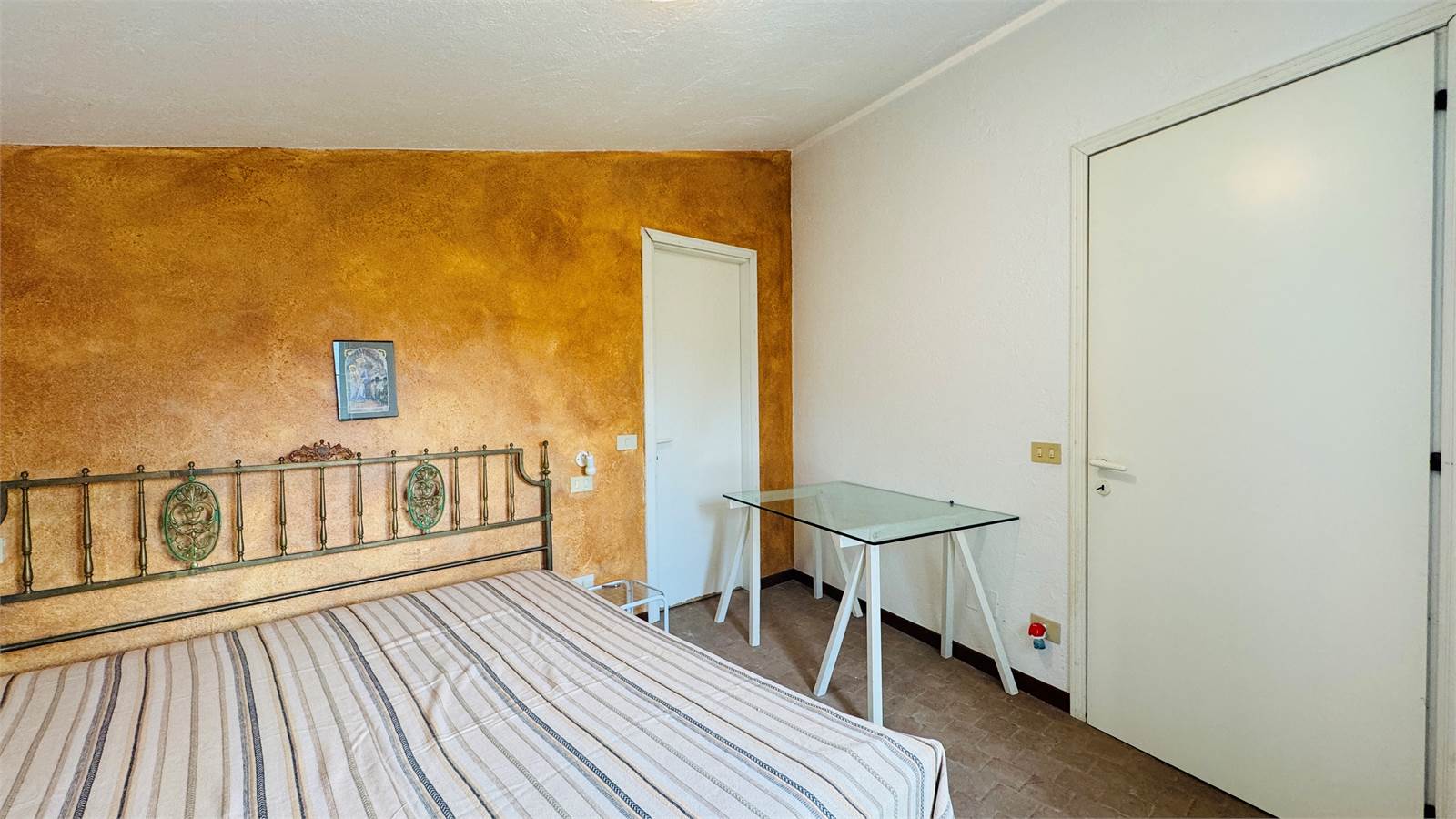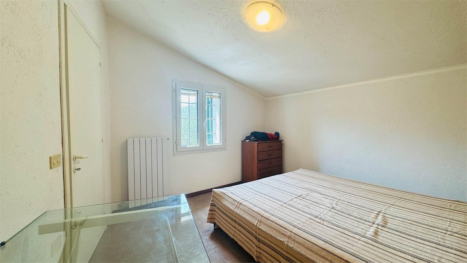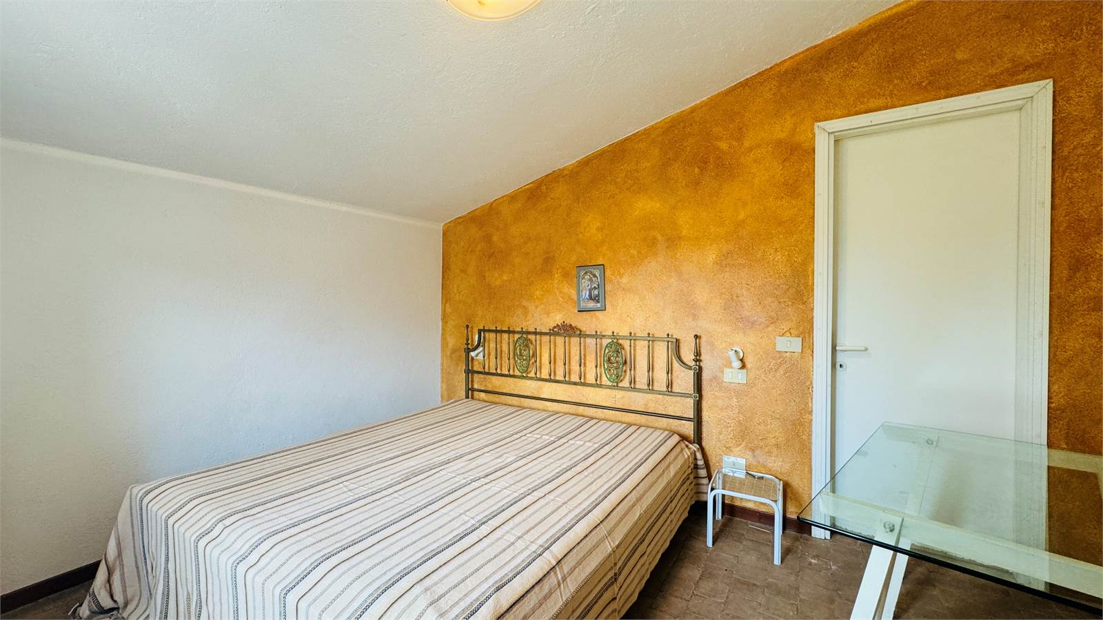 Il primo piano è ulteriormente composto da un bagno con vasca e da una camera da letto matrimoniale anch'essa con porta finestra che offre accesso alla veranda.