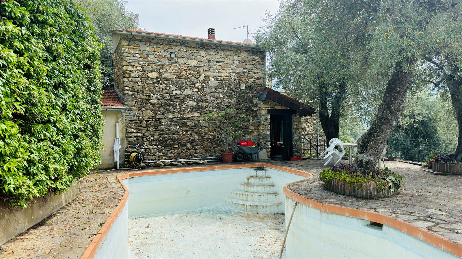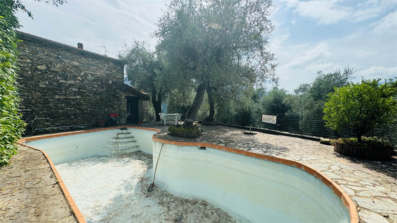La piscina ha bisogno di essere pulita e della manutenzione ordinaria, non viene riempita da circa due anni quindi la pompa ha bisogno di una revisione.