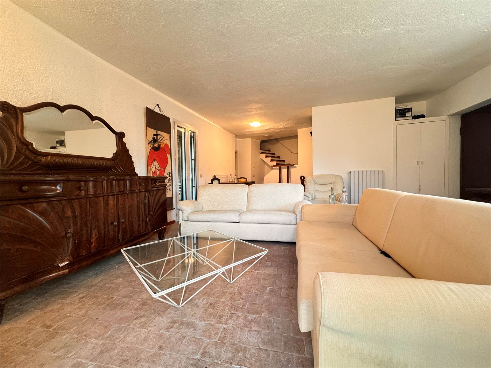 La villa è caratterizzata da pavimenti in mattoncini pieni che donano carattere alla casa, tutti i vetri sono doppi e i serramenti sono in ottimo stato, il riscaldamento e l'acqua calda sono autonomi con caldaia a GPL, il quale viene erogato da un bombolone installato in fondo al giardino.
