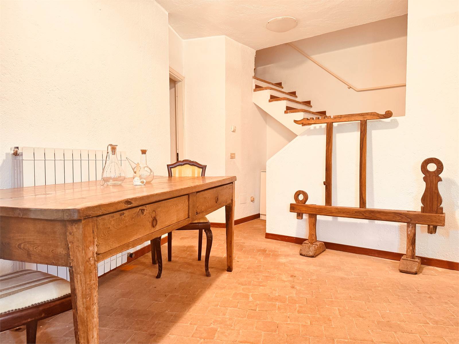 Tutta la facciata è stata realizzata con pietra a vista e dona quel carattere rustico tipico delle case di campagna. Si accede tramite una scala in muratura esterna che da accesso al primo piano abitativo.