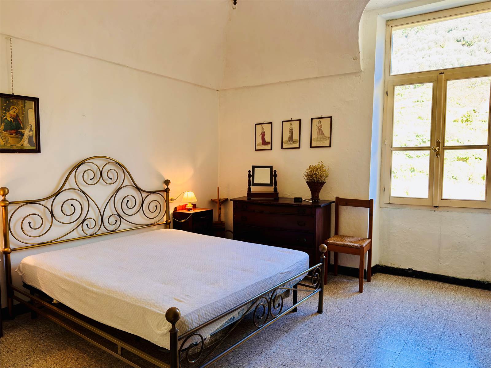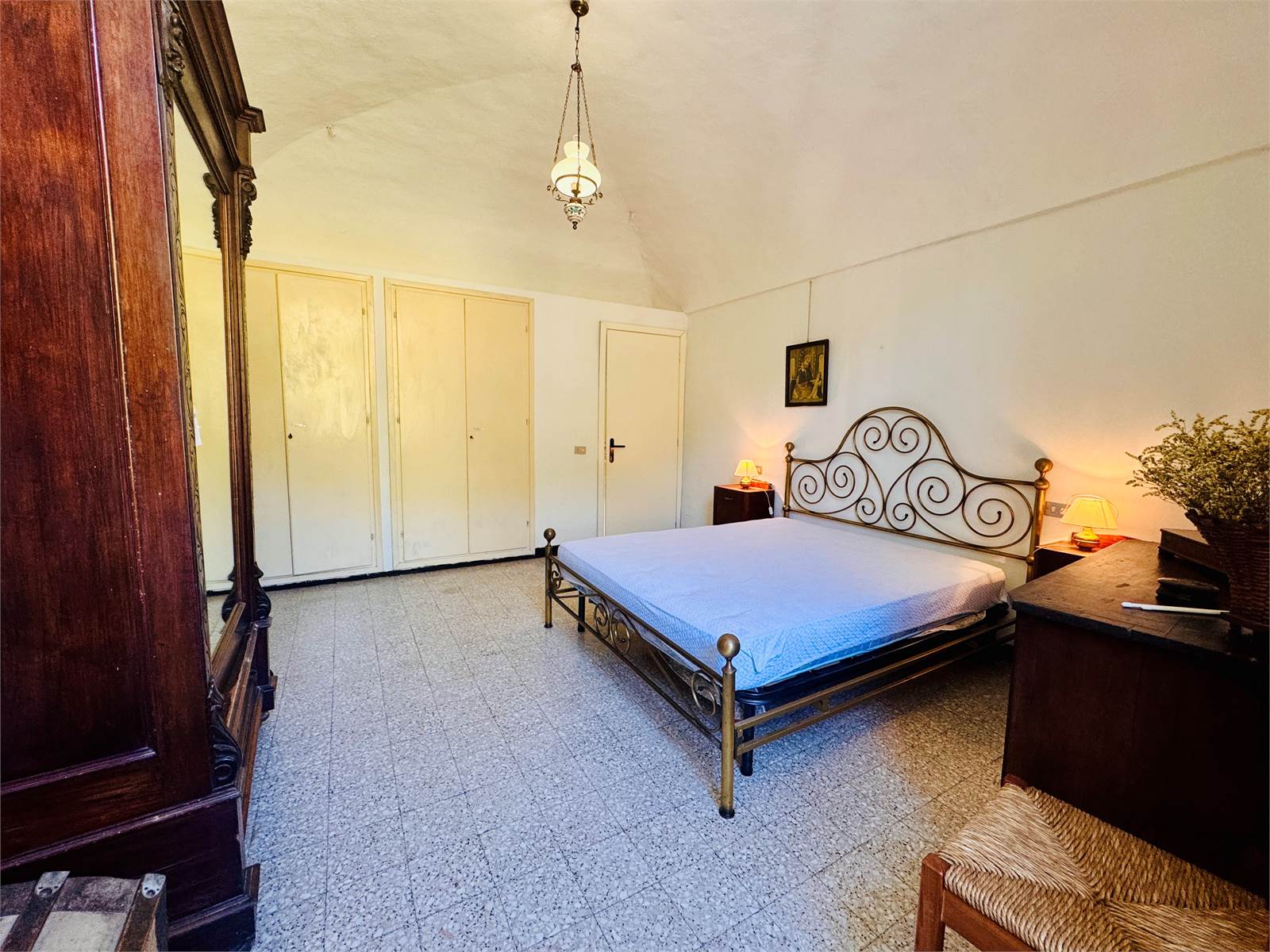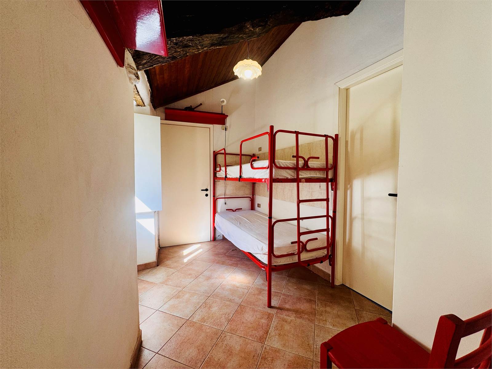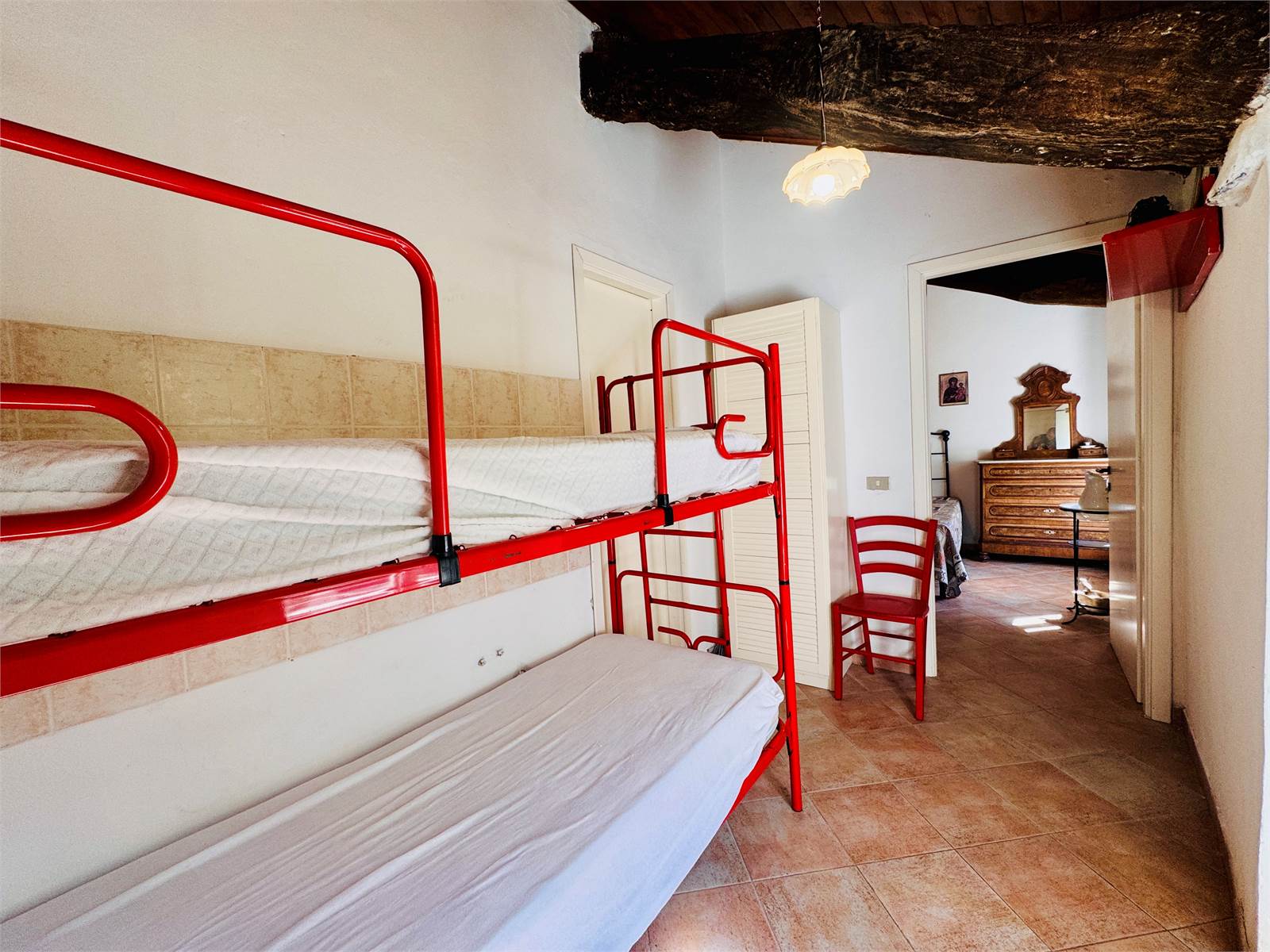 La zona giorno del primo piano è costituita da una cucina abitabile aperta sul soggiorno. Le camere da letto presenti al piano sono due, entrambe di metratura matrimoniale e caratterizzate da soffitti a volte. Il bagno ha la finestra e la vasca.