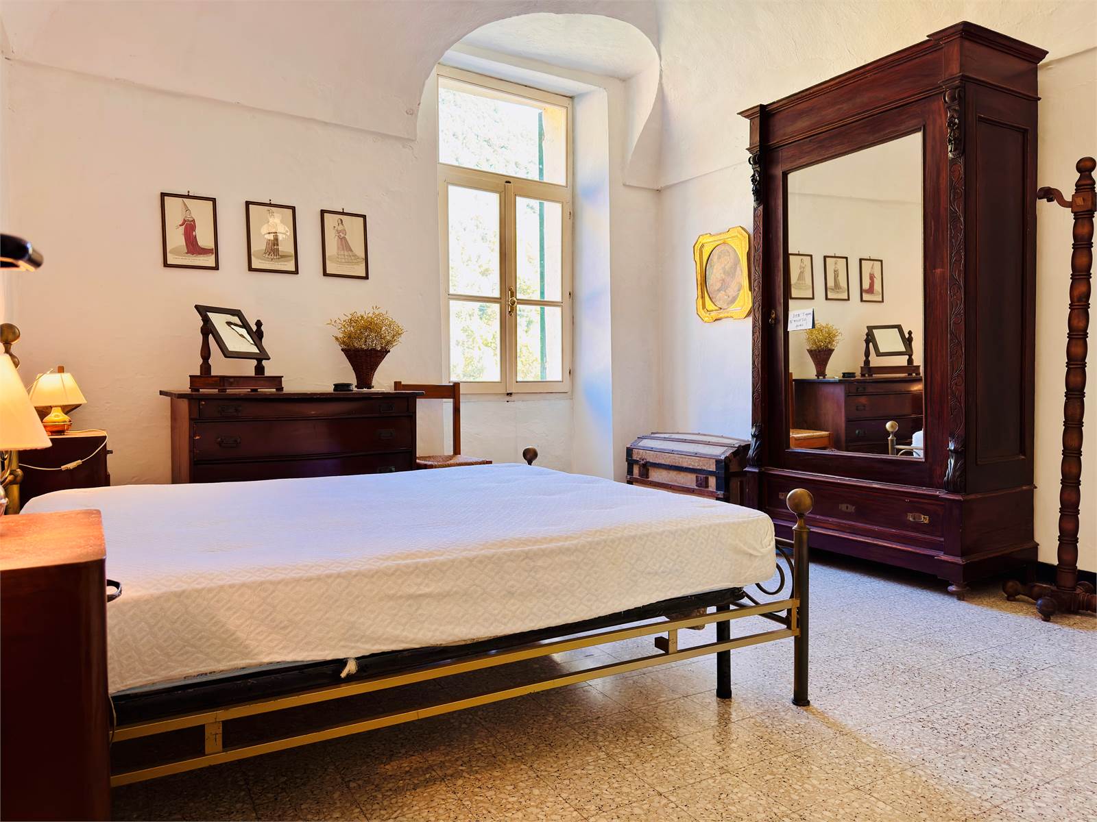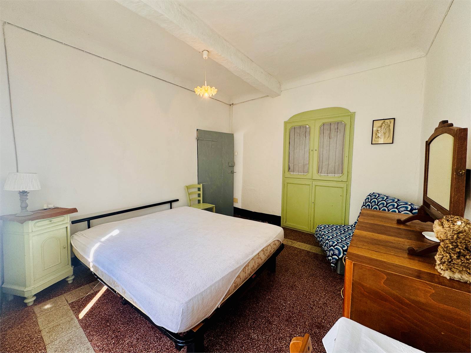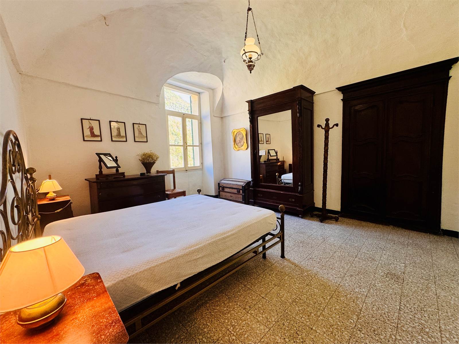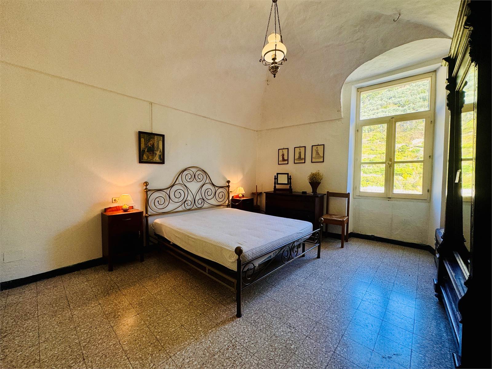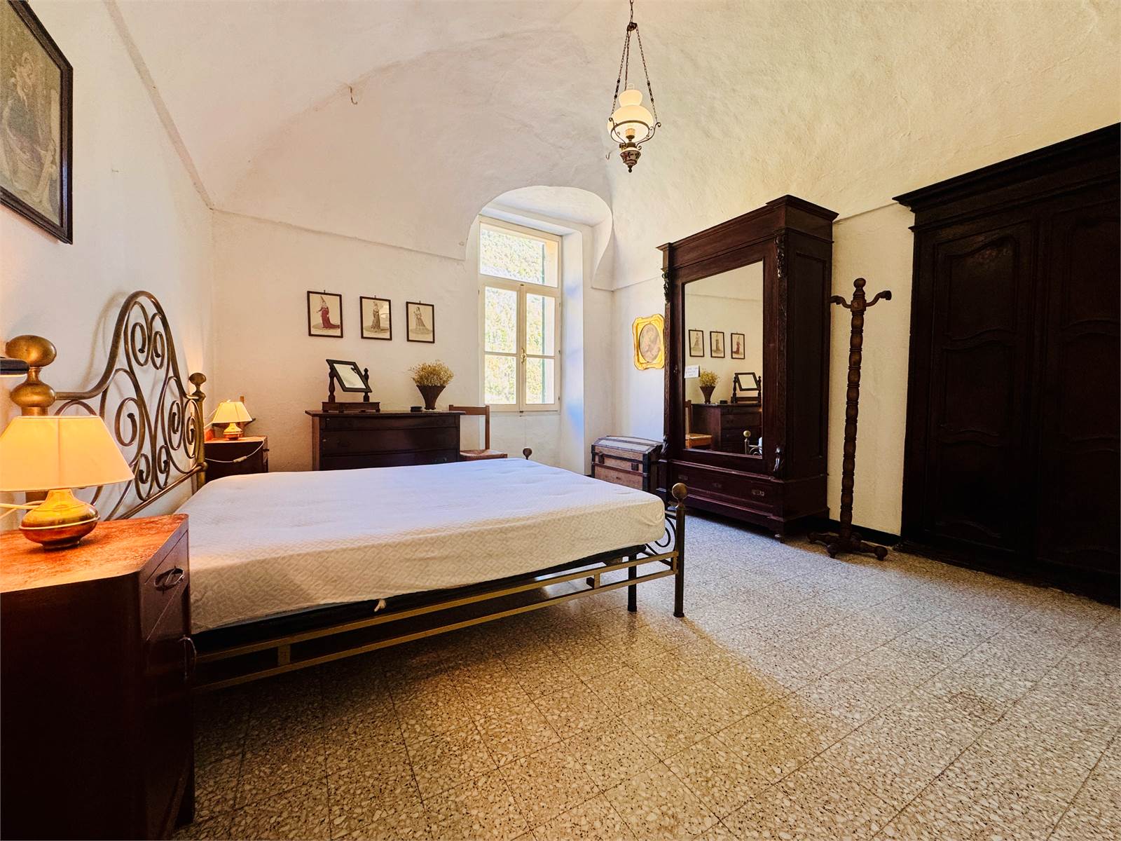 La zona giorno del primo piano è costituita da una cucina abitabile aperta sul soggiorno. Le camere da letto presenti al piano sono due, entrambe di metratura matrimoniale e caratterizzate da soffitti a volte. Il bagno ha la finestra e la vasca.
